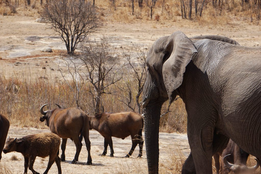 Nzou ist der dritte und älteste Elefant in Imire. Sie bevorzugt es allerdings mit einer Büffelherde zu leben statt mit ihresgleichen. Akzeptiert als ihre Anführerin folgen ihr die Büffel durch das komplette Reservat – ein wirklich verrücktes Bild.
