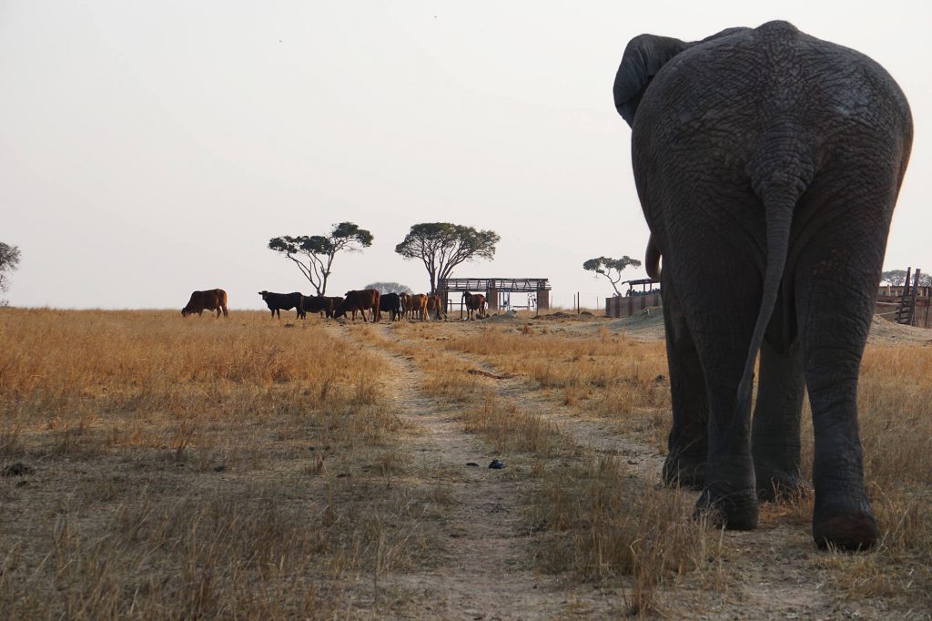 Nzou ist der dritte und älteste Elefant in Imire. Sie bevorzugt es allerdings mit einer Büffelherde zu leben statt mit ihresgleichen. Akzeptiert als ihre Anführerin folgen ihr die Büffel durch das komplette Reservat – ein wirklich verrücktes Bild.
