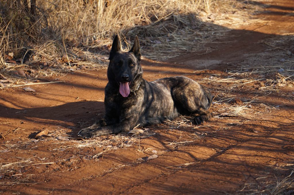 Murwi ist eine ganz besondere Hündin. Sie ist ausgebildet, um Wilderer aufzuspüren. Dafür wurde sie extra in Großbritannien ausgebildet und ist nun seit etwa einem Jahr Teil der Anti-Poaching-Einheit in Imire. Jeden Tag trainiert sie mit der Einheit und ist im Park im Einsatz.
