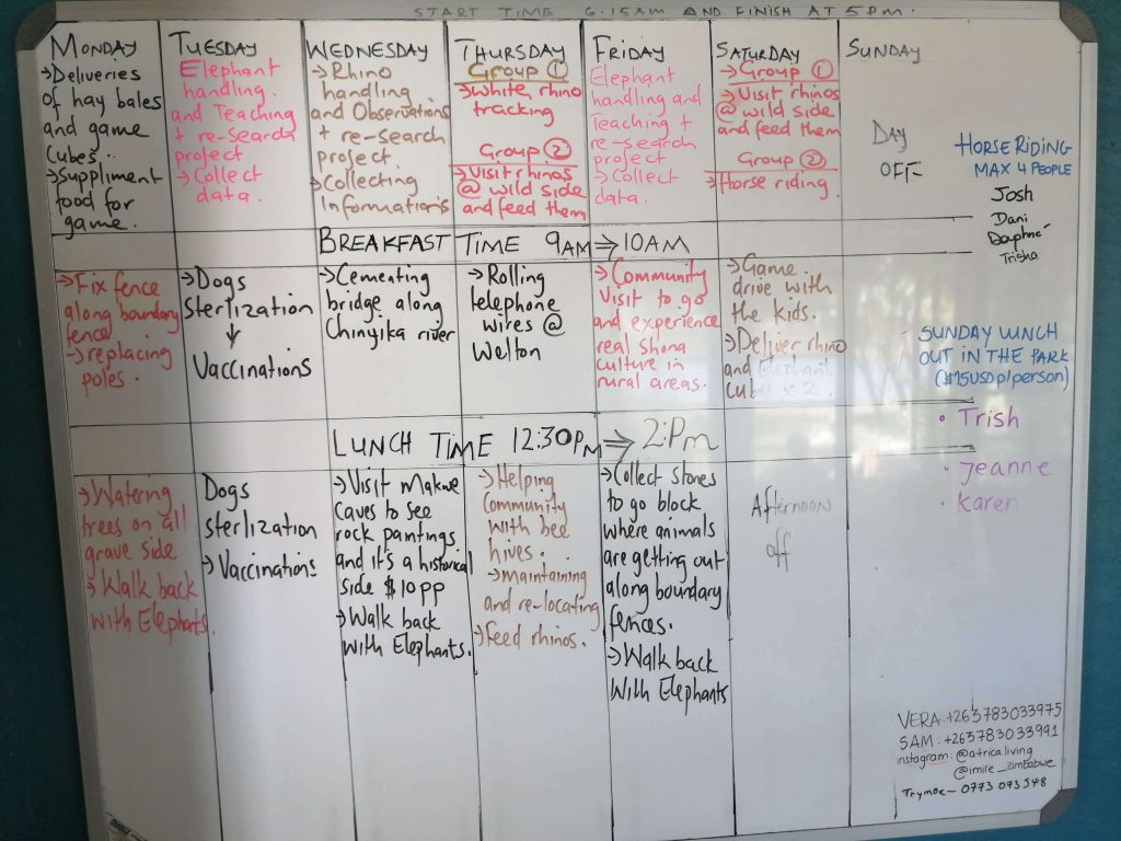 Jede Woche in Imire ist anders und die Aktivitäten waren sehr vielfältig, aber alle hatten ihren Sinn. Alles, was wir getan haben, diente dazu, die Mission und Arbeit des Reservats zu unterstützen. Manchmal waren es körperliche Arbeiten, oft aber auch Dinge, die in erster Linie dazu dienten mehr über die Tiere, die Natur und die Menschen zu erfahren. Dieses Wissen trage ich wie alle anderen mit nach Hause, versuche es weiterzugeben und zu teilen.
